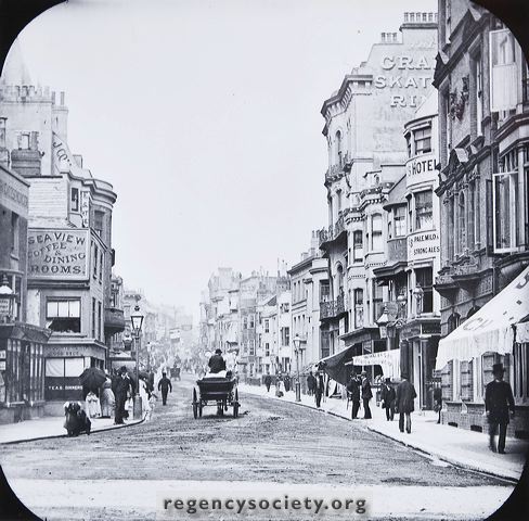 Brighton has gone mad for animated pictures. When we arrived on Saturday, Ma, Pa and me were just walking down Queen’s-road from the station with all our valises when we saw a big sign outside the Imperial hotel. You remember Queen’s-road, I’m sure. I bought this photograph in a shop for you, but Pa says it is at least 10 years old. Queen’s-road was like that when he was a younger.