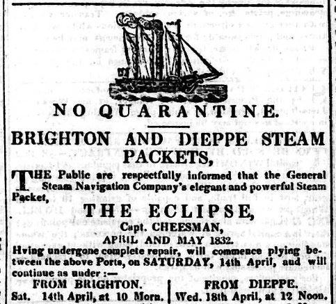 One of Peter Black’s first jobs as consul was to ensure that every “packet or vessel” leaving the Sussex coast bound for France carried a bill of (clean) health. Cholera was widespread in England, so quite rightly it was the French consul’s duty to protect French citizens in their own country.
